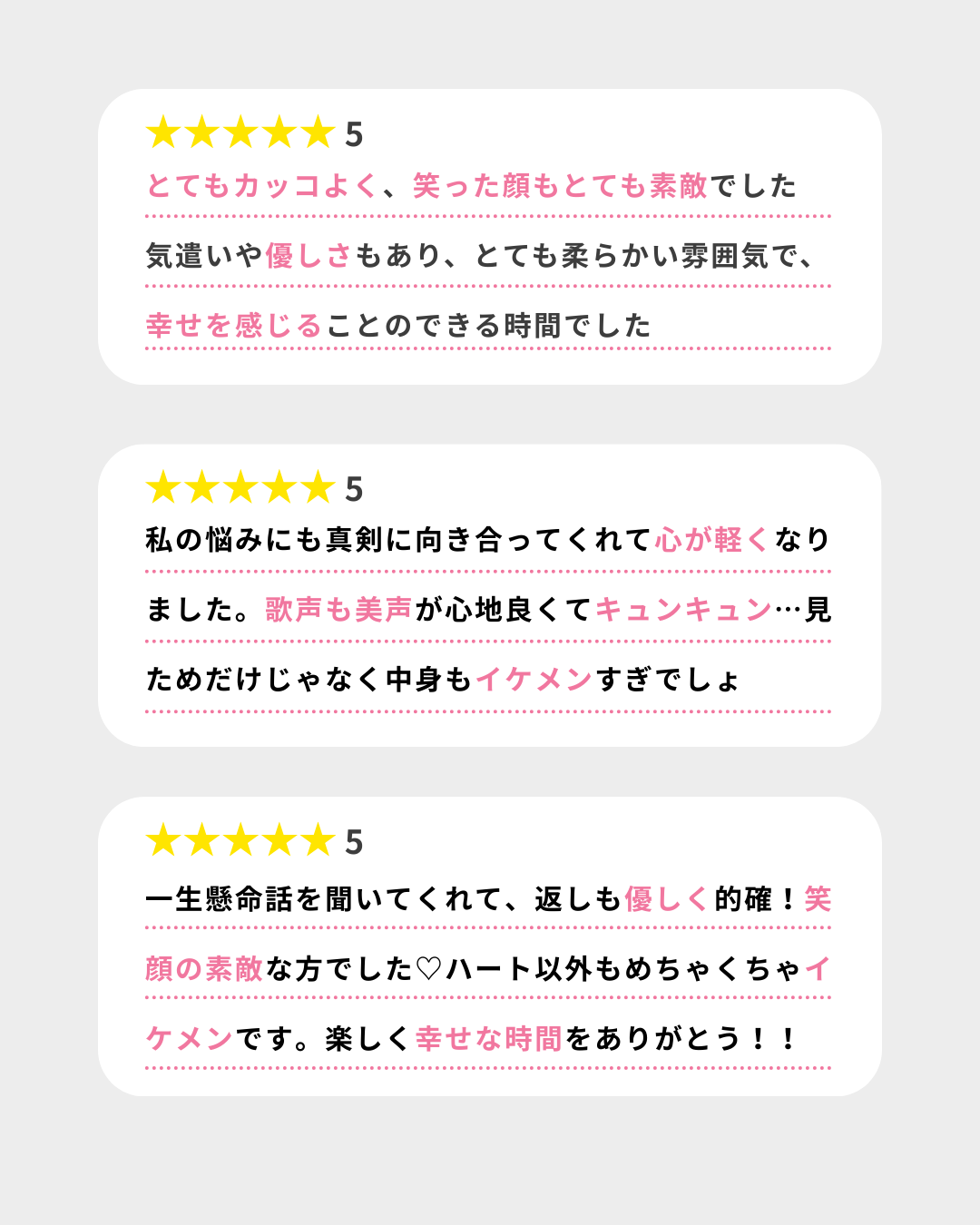 優しい、イケメン、笑顔が可愛い、安心感